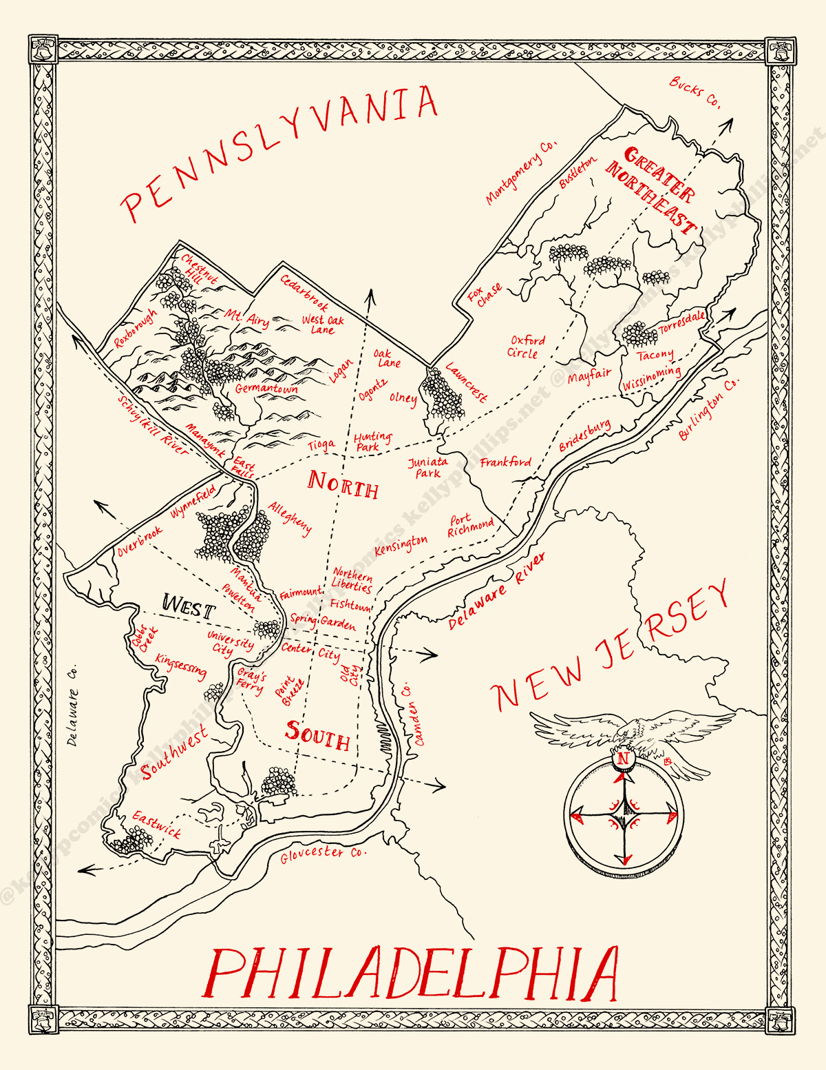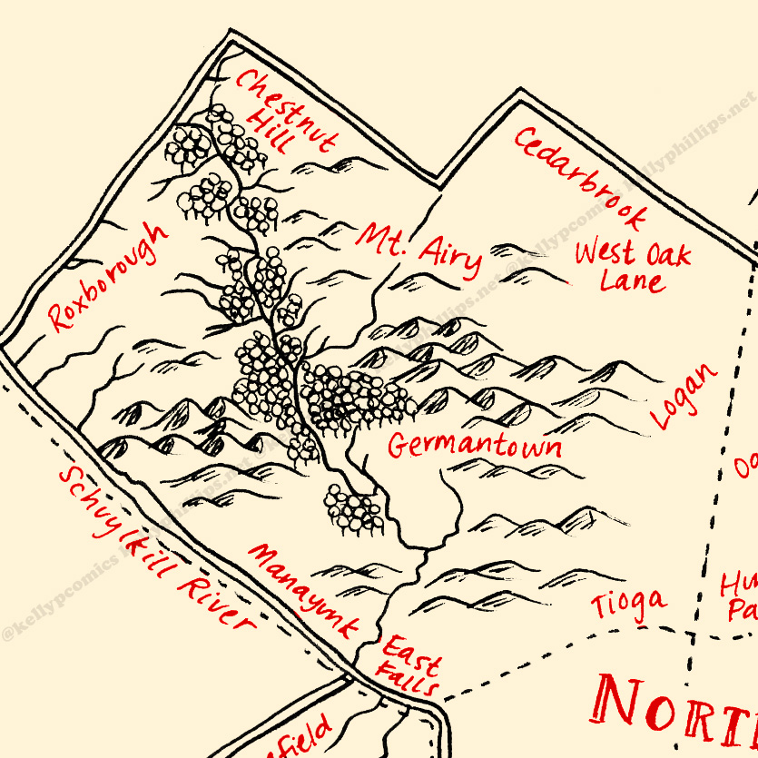 Philadelphia Map, in the style of J.R.R. Tolkien